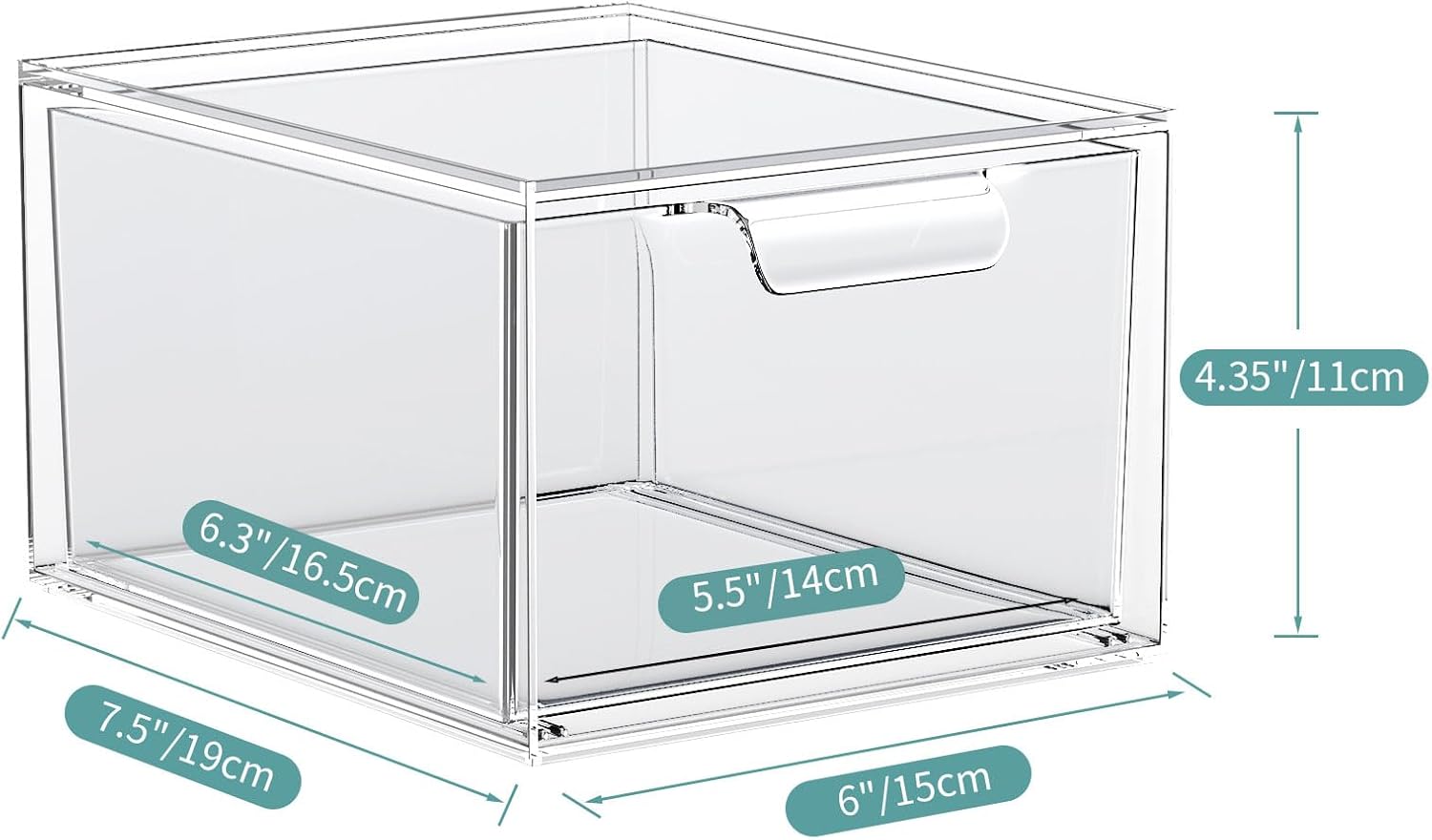 Introducing the ultimate solution for keeping your cosmetics and small items neatly organized – the 2 Pack Stackable Makeup Organizer and Storage! Crafted from premium acrylic material, these clear plastic storage drawers are not only durable but also elegantly designed to enhance the aesthetics of your vanity, undersink, kitchen cabinets, or pantry.
