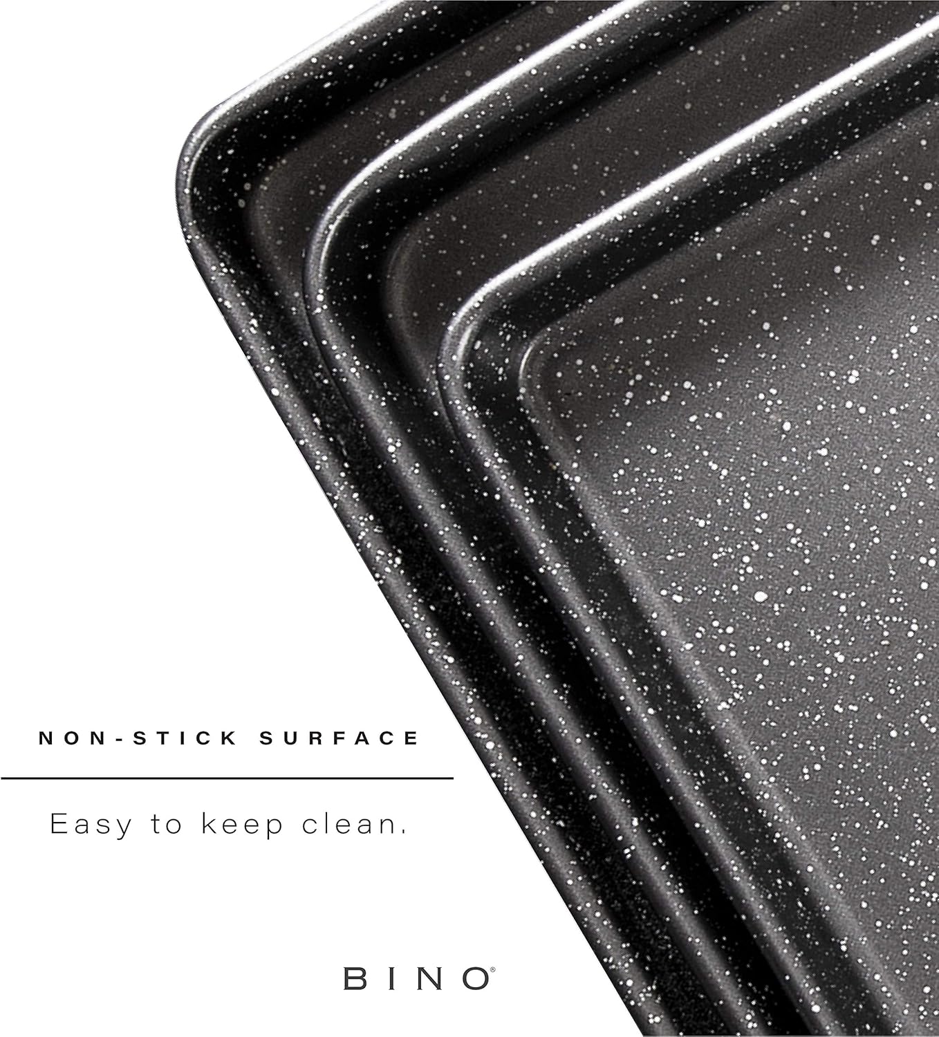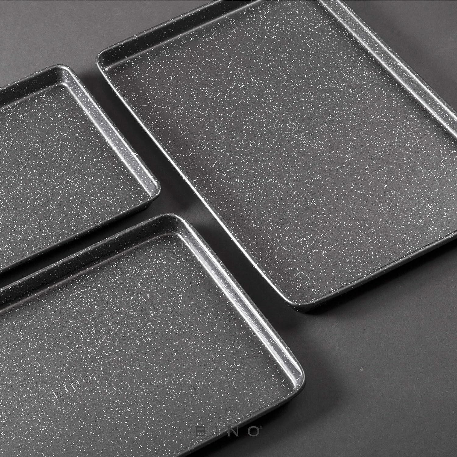 BINO Bakeware Nonstick Cookie Sheet Baking Tray Set 3-Piece – Speckled Gunmetal | NonStick Baking Pans Set | Carbon Steel Tray Bakeware Sets | Oven Safe Baking Set | Cookie Sheet Pans | Food-Safe Tray